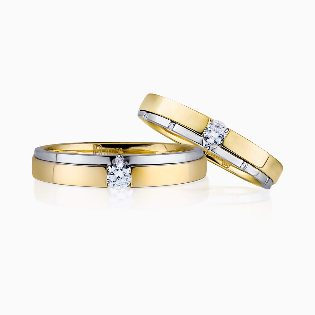 Nhẫn cưới vàng trắng mix vàng 18K đính kim cương